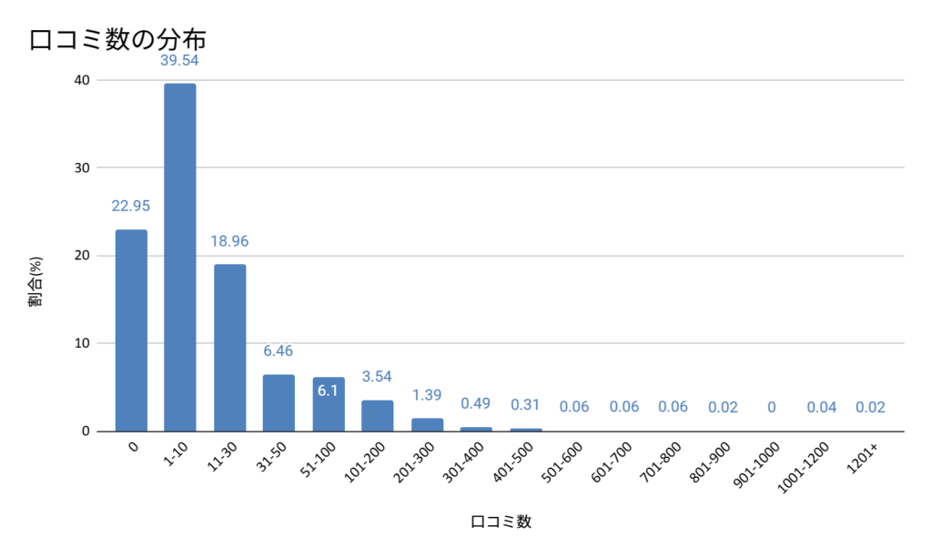 全体の約23%が口コミ「0」