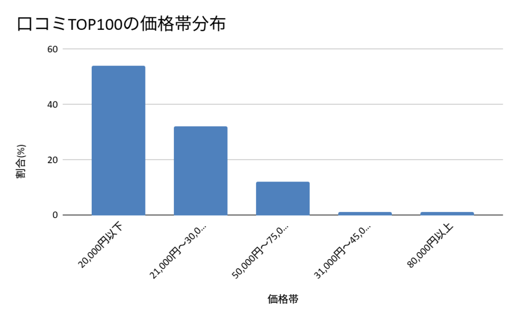 54%が「2万円以下」の価格帯。