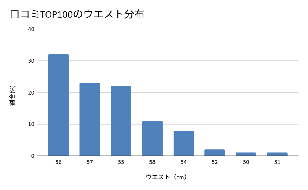 55〜57cmで約80%を占めています。